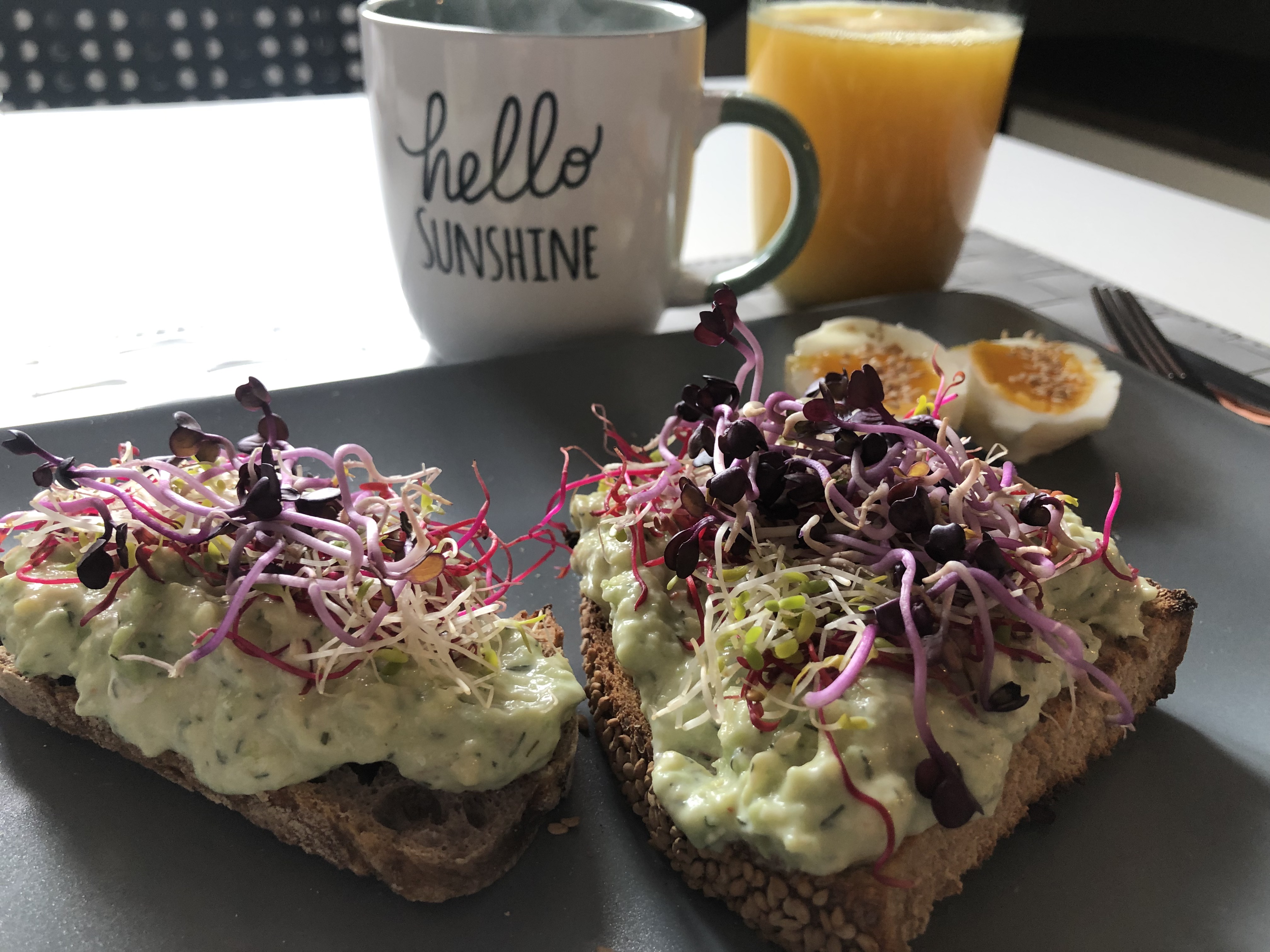 Nella preparazione della crema di avocado, aggiungo un cucchiaio di yogurt greco 0% e dell’aneto tritato. In questa maniera, rendo l’avocado toast un po’ più completo. Accompagnato da delle uova sode e dai germogli, diventa un’ottima idea per un brunch.
