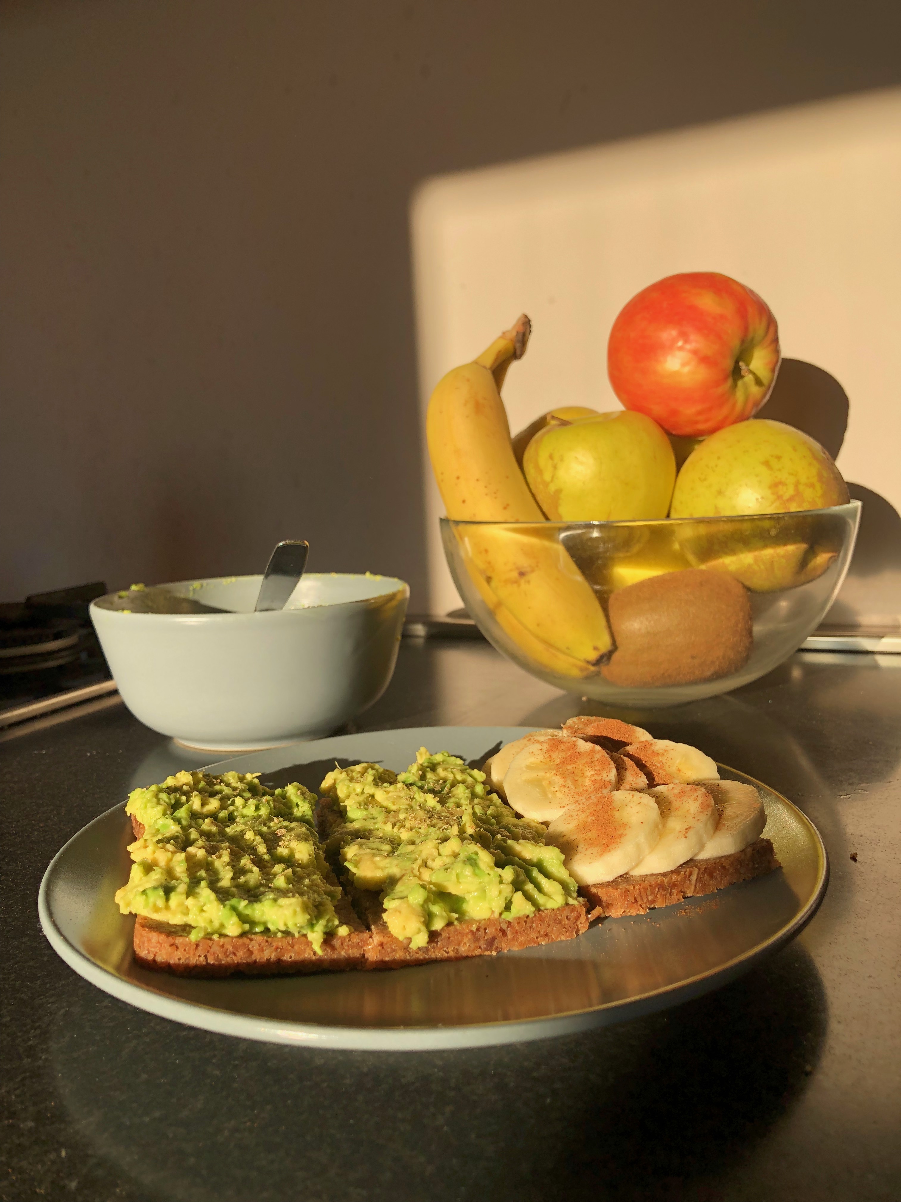 Il classico avocado toast con fette di banana, semi e, a piacere, una bella spolverata di cannella per contrastare l’acido del limone.