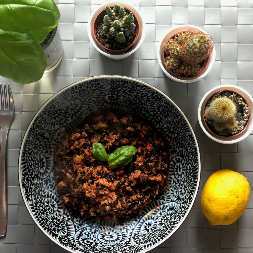 Riso venere con sugo di tonno e alici