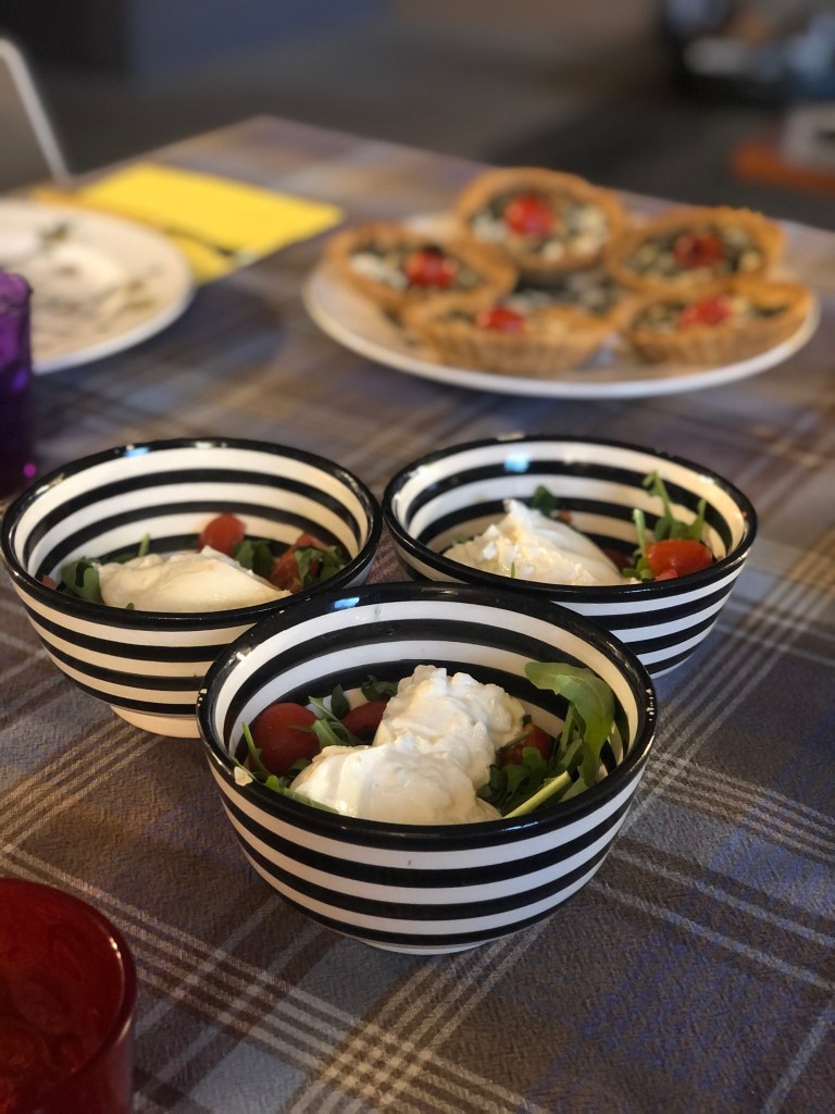 insalata con rucola, basilico, pomodorini e burrata