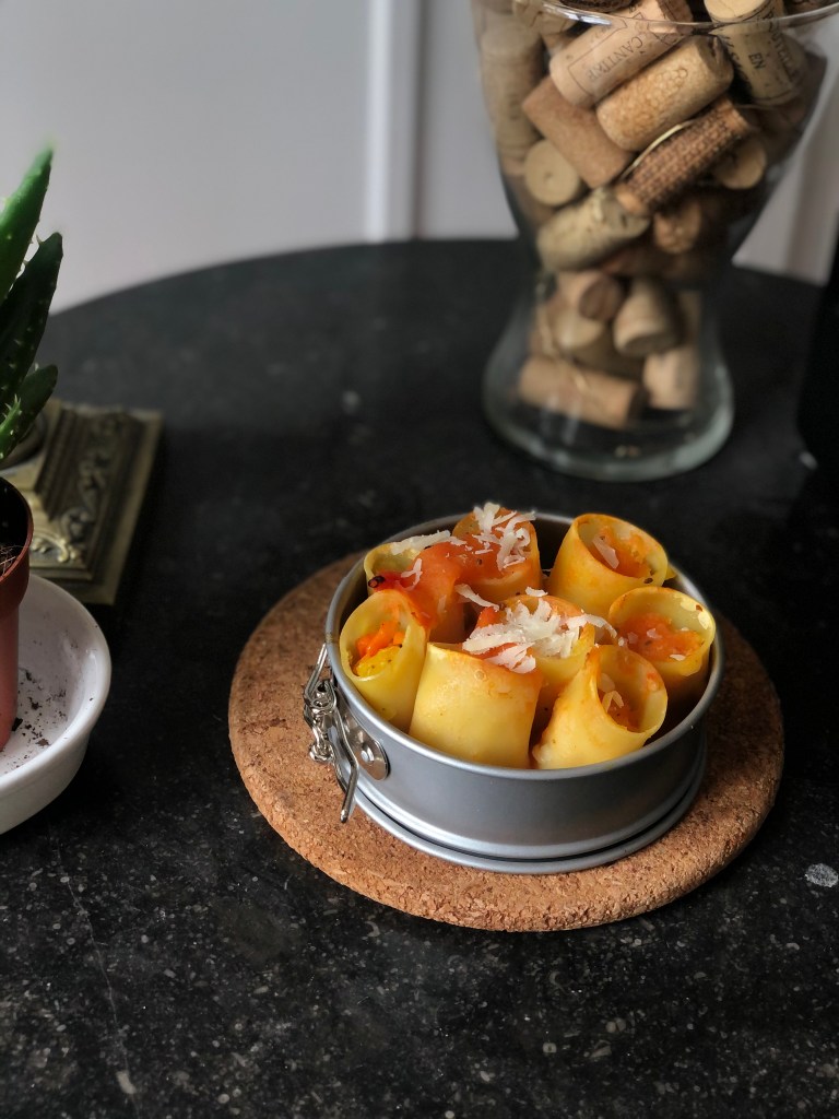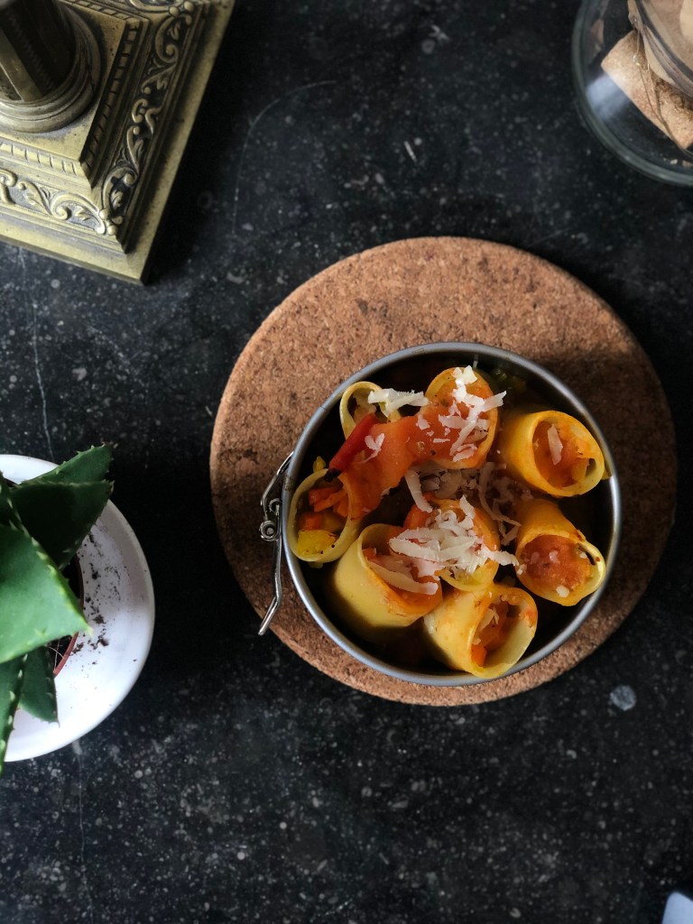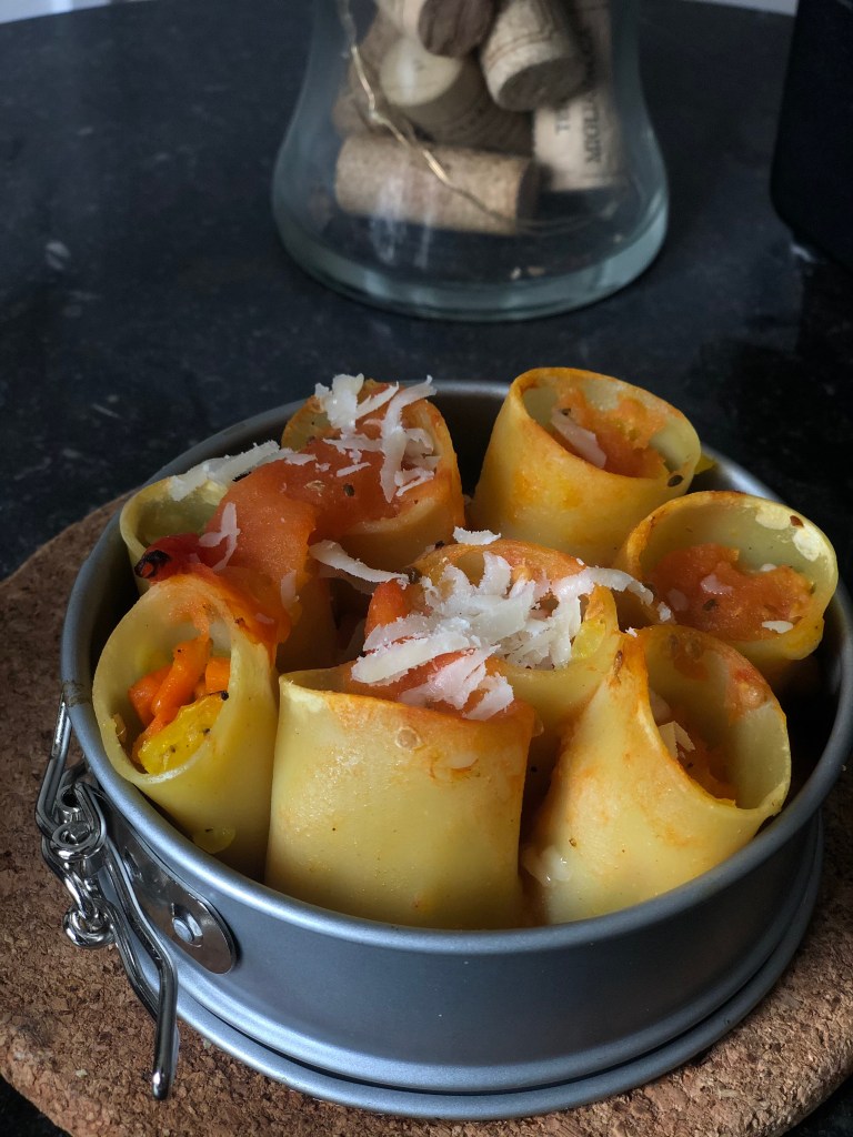 paccheri lisci di Gragnano ripieni di ragù di verdure al forno con spolverata di parmigiano