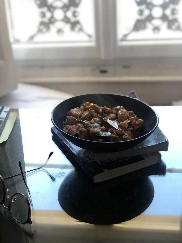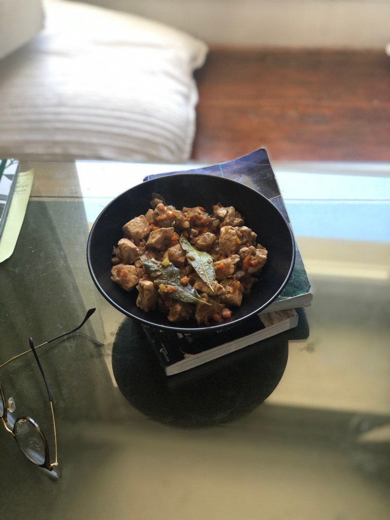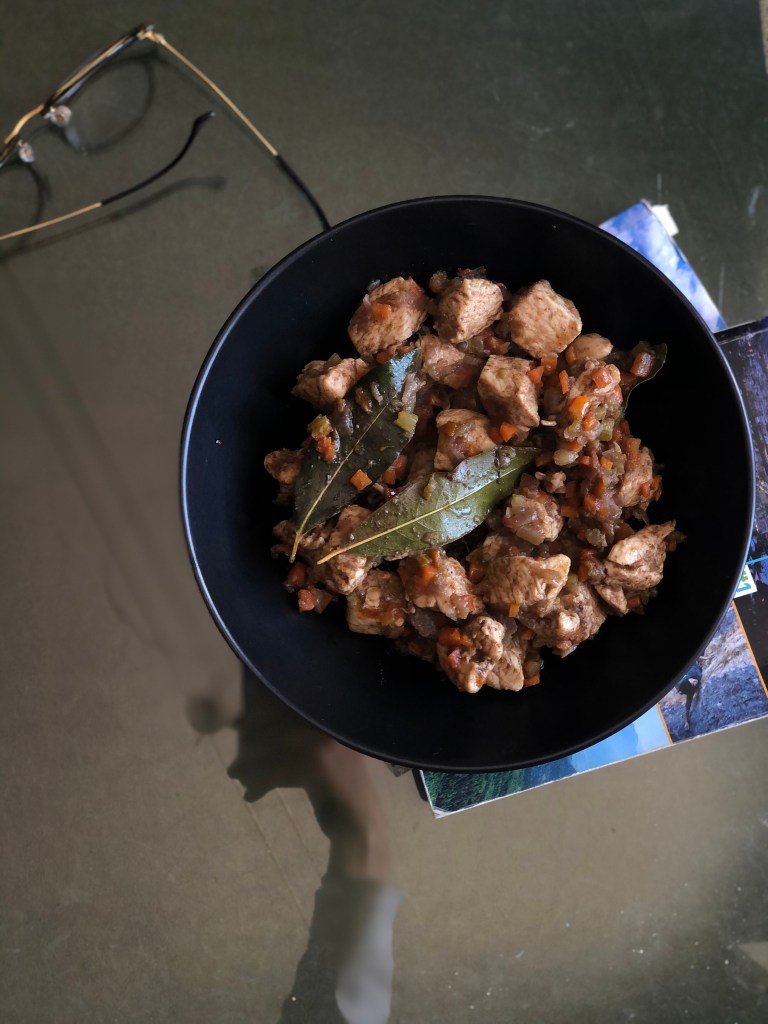 Alzare la fiamma e soffriggere il petto di pollo tagliato a cubetti. Aggiungere 1 bicchiere di acqua e lasciare cuocere a fuoco basso, finché l’acqua non si sarà ritirata (ci vorranno circa 20 minuti). A questo punto salare a piacere e servire!