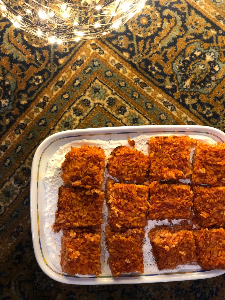 Questa ricetta l’ho proposta a una cena per mio papà e i suoi colleghi. Mi sono ispirata a una ricetta che c’è già sul blog, i cubotti di risotto agli spinaci su crema di fromage blanc e tahini.