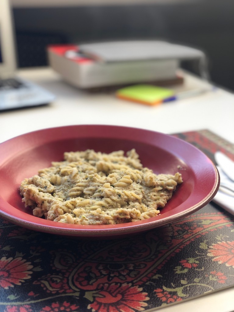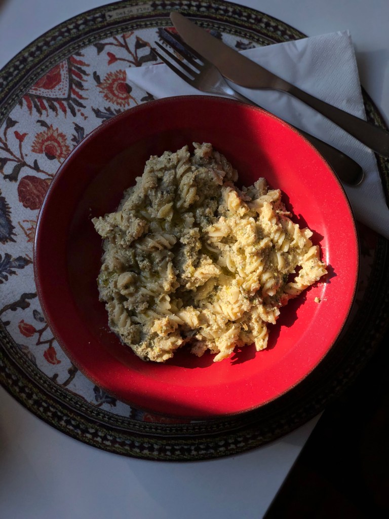 pasta con pesto di broccoli, tofu e noci al limone